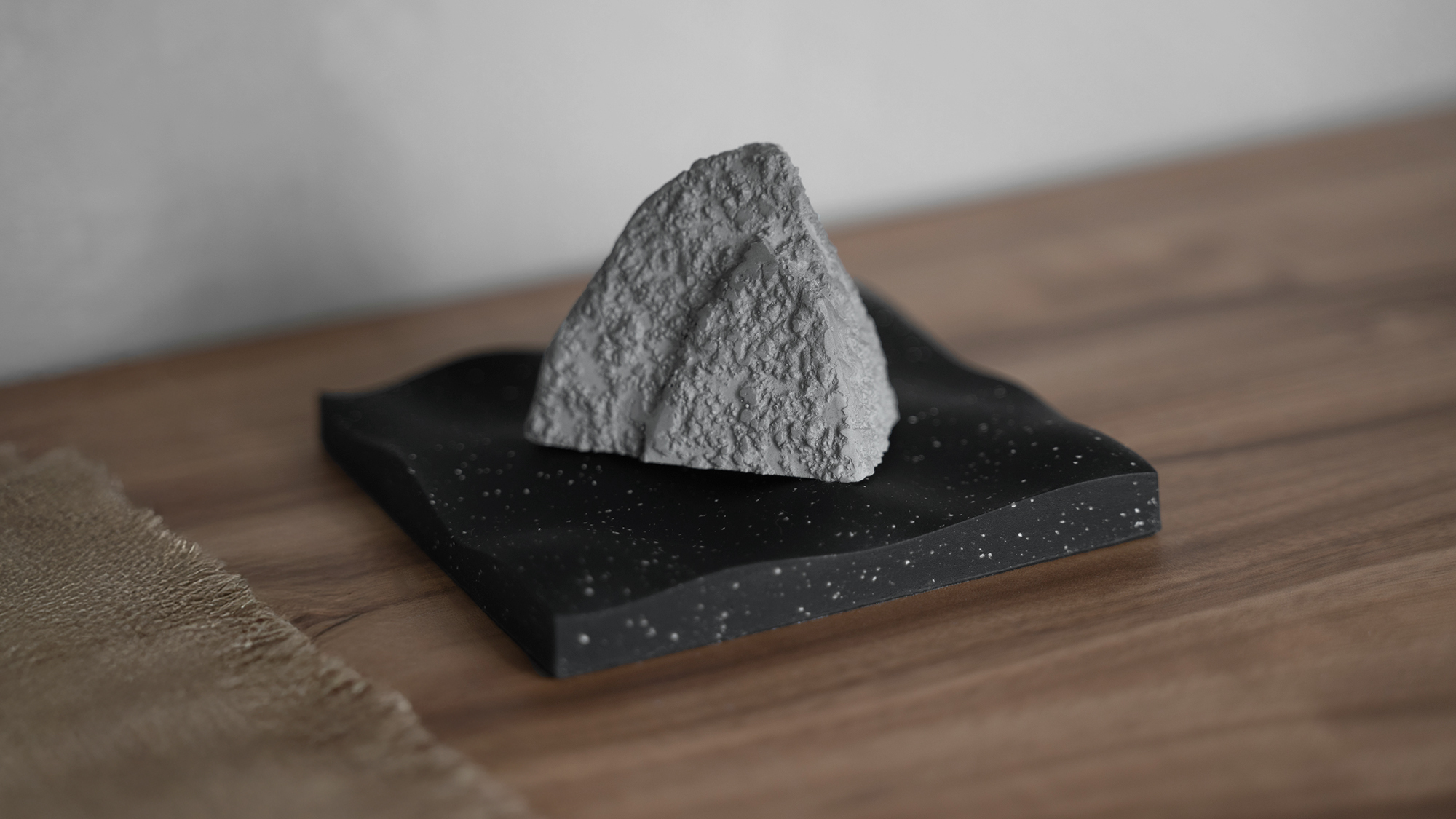 自然的意象,是軟水泥團隊在香氛系列最重要的元素,透過山形造型重新演繹擴香石,其每一面不同的山形呈現出不同樣貌。